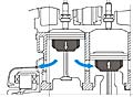 A kis tömegű kovácsolt dugattyúk tartozékai a króm-nitrid bevonatú, súrlódáscsökkentő kompressziógyűrűk és olajlehúzó gyűrűk, majd még keményebb, még tömörebb gyűrűk zárják a sort. Az egy darabból készült hengerblokkon és a felső forgattyúsházon, a hengerek közt található áramlási lyukak csökkentik a forgattyúsház nyomás- és mechanikai veszteségét.