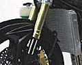 Fordított Showa elsővillájának, melynek belső csöve 43 mm, teljesen állítható a rugóelőfeszítése is és a csillapítása is. A teljesen állítható Showa hátsó lengéscsillapító dugattyúrúdja nagyobb átmérőt kapott a jobb csillapítás érdekében.