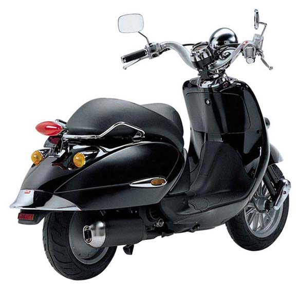 A 150 köbcentis robogót 1 hengeres 4-ütemű blokkal szerelték, elkerülve ezzel a 2 ütemű robogók azon kellemetlen tulajdonságát, hogy egyfolytában olajjal kel feltöltögetni. A 115 kilógrammos motort elöl 2 dugattyús 190 mm-es tárcsafék, hátul 140 mm-es dobfék lassítja, fekete és kék színben kapható potom 1 millió forint körüli áron.