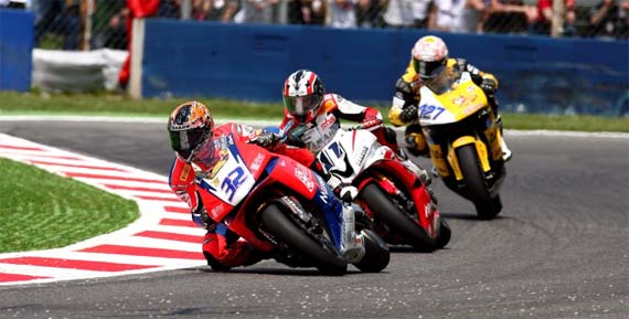 A vasárnap egy rajtot követő balesettel indított, aminek hét versenyző – köztük Fonsi Nieto – esett áldozatául. Egyébként Bayliss és Corser jött el a legjobban, de Haga és Muggeridge keményen tapadt rájuk. Barros a balesetben földre került motorok, versenyzők kikerülése miatt némi időt vesztett. Pár körrel később Toseland Hondája egy kigyorsításnál keresztbe állt, amit a brit világbajnok ügyesen korrigált, ám a szorosan mögötte nyomuló Kagayama a CBR hirtelen sebességvesztése miatt belement annak hátsó kerekébe és bukott. A japán nem valami szerencsés idén, mostani szereplését is hátráltatta jobb kezének korábbi sérülése, aminek nyilván nem tett jót az újabb bukás és ugyan a második futamon elindult de két kör után kiállni kényszerült. Az első futamot viszonylag nagy fölénnyel Bayliss nyerte, míg a dobogós helyekért Corser, Barros és Haga küzdött igazán látványosan. Eszméletlen volt mikor féktávokon mindhárman fej-fej mellett estek be a kanyarba, vagy amikor a Parabolicában hárman három íven csúsztatták a gépeket. A brazil ex-MotoGP versenyző az utolsó pár körre kissé el is tudott szakadni üldözőitől így második lett azon a pályán, amin utoljára egy 80 köbcentis ’szúnyoggal’ versenyzett még a nyolcvanas években. „Ez aztán tényleg jó verseny volt! Az első kanyarban akadt némi problémám, mert túl nagy volt a forgalom de a legrosszabb az volt az egész versenyben, mikor Kagayama pont előttem esett. Tényleg vissza kellett vennem, nehogy elkapjam. Ezután azért minden jól ment. A csúsztatósdi nagyszerű volt. Nagyon boldog vagyok és köszönöm a Klaffi Hondának, hogy ilyen nagyszerű gépet adtak alám a hétvégére.” – nyilatkozta Barros a verseny után.