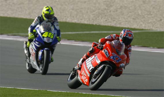 A 800-as gépek bemutatkozását mindenki nagy érdeklődéssel várta, hiszen a csapatoknak nagyon nagy kihívást jelentett az új motorok kifejlesztése. Ami az első futamon kiderült: a Ducati baromi erős motort épített, mivel a hosszú célegyenesben Casey Stoner dukija szinte állva hagyta Rossi Yamaháját. Az ausztrál versenyző bemutatkozása új csapatánál nem is sikerülhetett volna jobban, más kérdés, hogy csapattársa Capirossi bukott, így az olasz istállónál az örömbe némi üröm is vegyült. “Kívánni sem lehetne többet, ez volt az első versenyem a Ducatival és a Bridgestonnal, ez egy tökéletes kezdés.” – nyilatkozta boldogan Stoner. “Az utolsó körben nem tudtam, hogy van egy kis előnyöm, és ekkor futottam a leggyorsabb köröm, ami mutatja, hogy milyen jó a Bridgestone. Vezetem a bajnokságot, ami kicsit fura érzés, de ez csak az első futama volt egy nagyon-nagyon hosszú évadnak.”