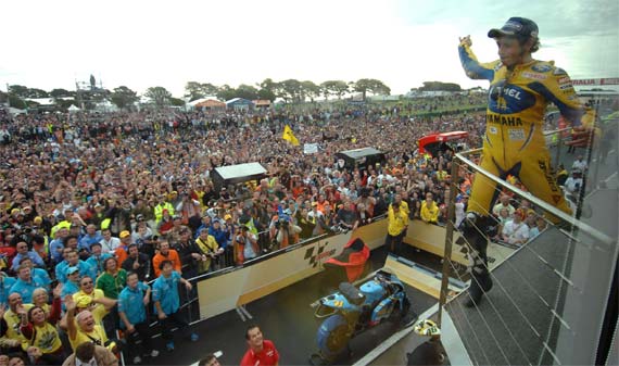 A vasárnapi rajt nem ment simán ugyanis rákezdett az eső, ezért hivatalosan is esős versenyként indult és újra fel kellett állni a rajtrácsra. A késleltetett rajtnál Nakano jött el a legjobban és valami hihetetlen módon az első kör végére már 2.5 másodperccel vezetett a mögötte jövő Gibernau előtt. A spanyolnak elsősorban Rossival gyűlt meg a baja, aki kanyarról-kanyarra előzte sorban az embereket...esetenként kettőt is. Majd elkezdett komolyabban esni az eső és a versenyzők megkapták a fehér zászlót, mely értelmében kimehettek motort cserélni a boxba. Nakano kinn maradt még egy körre mialatt a többiek már az esőgumis motorjaikra váltottak és ez a taktika nem vált be, ugyanis a japánnak is ki kellett mennie de vissza már csak épp Gibernau mögé érkezett. Ráadásul az esőgumikkal nem tűnt valami magabiztosnak és fokozatosan visszaesett. Eközben Gibernau mögött már Checa és Vermeulen motorozott, míg Rossi és Hayden a nyolcadik-kilencedik helyen gyilkolta egymást. Hayden egyébiránt eléggé elrontotta a rajtot, ugyanis a tizenhatodik helyen ment az első kör végén, de az esőben elég komolyan megindult felfelé. A verseny felénél aztán elkezdett csökkenni az eső intenzitása, és ahogy száradt a pálya, Melandri egyre jobban begyorsult. Az olasz megelőzte Vermeulent is, tizenegy körrel a vége előtt pedig már közvetlen Gibernau mögött ment, akitől nem sokkal később át is vette a vezetést és onnan már egyenes út vezetett a győzelemhez, amit Marco végül keresztben csúszva tett meg. „Elképesztő volt ez a verseny és számomra a lehető legjobb időben! Phillip Island-en (ahol a 250-es bajnoki címemet is megnyertem) győzni minden körülmények között hihetetlen élmény. Nagyon motivált voltam mivel már a reggeli bemelegítésen is tényleg jól mentem és a versenyre csak kevés dolgon változtattunk. Mindenféle erőltetés nélkül kellett motoroznom mivel a csúszós körülmények között nehéz volt érezni a motort. Szeretném megköszönni a csapatomnak, a Hondának és a Michelinnek a tökéletes munkát.” - mondta Macio.