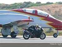 A valenciai és jerezi Aprilia tesztsorozat után, Fonsi Nieto szakított egy kis időt a szórakozásra is, és elfogadta egy spanyol vadászpilóta kihívását, hogy gyorsuljanak egyet egymás ellen a murciai katonai bázis kifutópályáján.