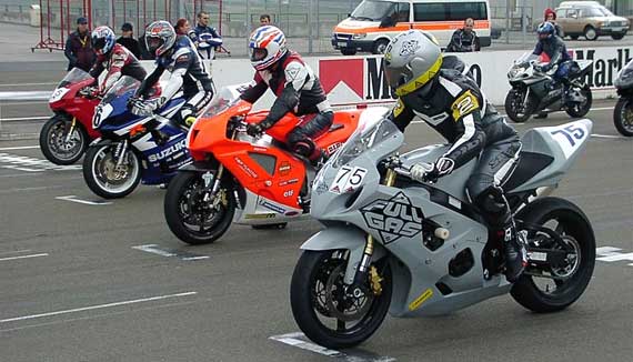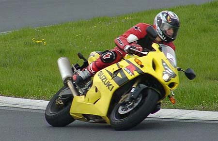 Ahogy lenni szokott, a leintés és Borsay Szabolcs bemutatója után kisütött a nap és kezdett felszáradni a pálya. Ki is vittük pár kör erejéig az új 600-as és 750-es gixert, hogy belekostoljunk a 2004-es újdonságokba. Az első benyomások nagyon jók voltak a motorokról, királyak a fékek, a blokk, minden fasza, bár kicsit mintha ideges lenne az eleje a 600-as gépnek kigyorsításkor. Többet nem nagyon szeretnénk mondani, egy hoszabb távú teszten remélhetőleg mindhárom GSX-R-t (az 1000-essel karöltve) alkamunk lesz kipróbálni.
