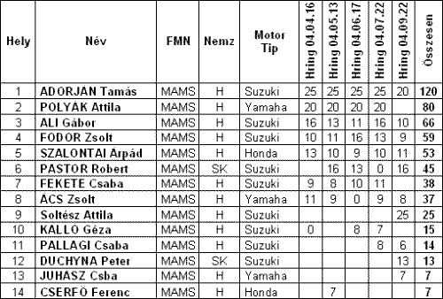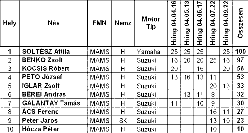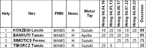 GSX-R Klub futamának végeredménye