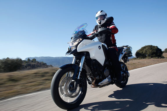 A három napos menetpróbára Barcelonától nagyjából ötven kilométerre, a festői szépségű El Vendrell környékén került sor. Érkezésünkkor már ott sorakozott a tucatnyi Crosstourer a szálloda parkolójában, ezeket mustrálgattuk a kollégákkal lelkesen, mielőtt nyeregbe szálltunk volna. Az új modell formavilága a nemrég bemutatott NC-VFR modellekre hajaz, de alapvető különbség, hogy a Crosstourer vezetőjének és utasának több hely jut. A műszerfal és a kezelőszervek szintén az NC700-ra emlékeztetnek, ám itt sokkal több információval szolgál a digitális kijelző, a megszokott adatokon túl például a környezeti hőmérsékletről is tájékoztat. Hogy mennyire kezelhető méretű a Crosstourer, jól mutatja, hogy a 170 centis firkászok is biztos talajfogást találtak nyergéből, ami kisebb csoda, hiszen 85 centis ülésmagasság nem éppen kevés… A titok nyitja a V4-es blokk építési módjában rejlik: a két hengersor – eltérően a Honda hagyományaitól - jelen esetben mindössze 76 fokos szöget zár be. A kompakt erőforrás hátsó hengerei nem lógnak be az ülés alá, így a motor váza csupán arasznyi szélességű a pilóta alatti részen, s nem kényszeríti terpeszbe a motorost.