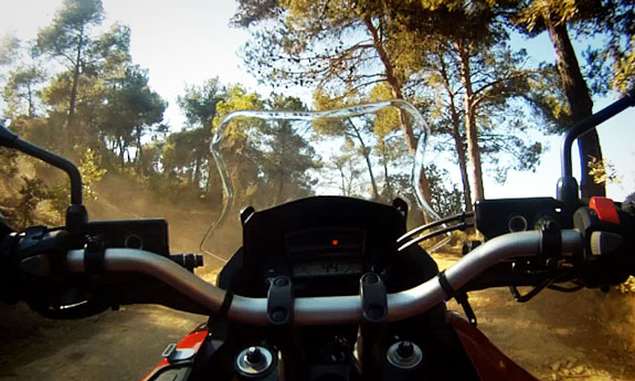 A Crosstourer gazdájának az aszfaltútról letérvén sincs nehéz dolga, a 19 colos első kerék simán veszi a gödröket, és a viszonylag magas súlypont sem zavaró. A 18 centis hasmagasságnak köszönhetően a nagyobb buckák (és a városi padkák) előtt sem kell mérlegelnünk, némi rutinnal meg gyúrós múlttal gyakorlatilag bármin átevickélhetünk vele. Ettől függetlenül kemény terepre nem igazán ajánlható, hacsak nem az Arnold Peterhansel név szerepel a személyi igazolványunkban…