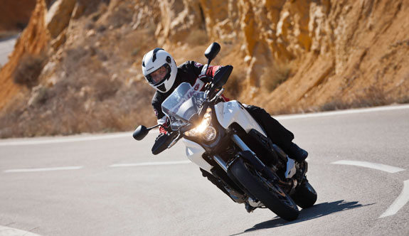 A Crosstourer elemében van a szerpentinen, és a vegyes használatú gumiabroncsok sem rontják el az élményt