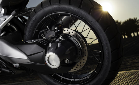 A motor hagyományos kuplunggal felszerelt változata kereken tíz kilóval könnyebb a DCT-s verziónál, és a magamfajta régivágású pilótáknak jobban is fekszik, így a „lábbal váltós” változattal még jobb mókának tűnt a kanyarvadászat. A DCT jelzésű illetve a hagyományos váltóművel szerelt modell esetében is kardántengely továbbítja az erőt a 150 milliméter széles hátsó kerékhez, ám erre a megoldásra nem jellemző a régebbi, kardános motorok makrancos viselkedése. A korábbi megoldásokkal ellentétben a Honda hajtáslánca szinte érzéketlen a terhelésváltásokra, ezért kanyarban, ledöntött motornál is nyugodtan adhatunk teljes gázt, a motor hátulja nem fog „liftezni” a kardános erőátvitel miatt. Emellett nem érheti panasz a szélvédelmet sem, az állítható magasságú légterelő plexi mögött autópályatempónál is szélcsendben róhatjuk a kilométereket, csak a hórihorgas motorosokat zavarhatja a plexi által keltett turbulencia.