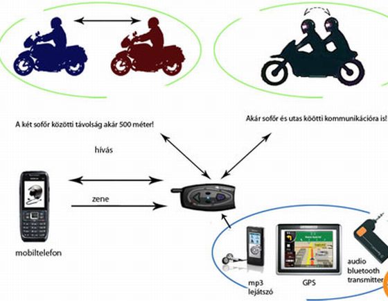 Természetesen a mobiltelefonnal is összeköthető az eszköz, így nem kell otthon rostokolnod a fontos hívást várva, motoron is bármikor elérnek - ha úgy akarod. A hosszabb túrákon zenehallgatásra is használhatod a készüléket, és akár fél kilométeres távolságból is alkalmas kommunikációra a többi motorossal.