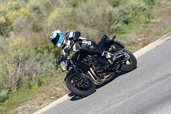 Szűk balos után rövid egyenes. Épp csak kihúzatom a kettest, és rádugom a hármast, hogy a következő, enyhébb bal-jobb kombinációra megnyugodjon a motor, már csak azért is, mert a két kanyar között van egy hupli, ahol kicsit elegykerekezik a gép. Előttem egy spanyol és egy cseh, mögöttem egy lengyel motorversenyző, a többiek már rég eltűntek a tükörből. Jön egy hosszabb jobbos, majd egy rövid egyenes és egy szűk bal… Hopp, itt még pont beférek a féktávon! Ez az! A cseh is megvan, már csak a spanyol kolléga megy előttem... de őt nem előzhetem meg. Valószínűleg nem is jönne össze a dolog, mert ő a felvezetőnk, a helyi menő, aki már egy hete itt rója az utakat az újságírókkal. Amikor megérkezünk a pihenőbe - egy kávézóba - néhány elismerő pillantást követően csak csendben vigyorgunk, mint a rossz gyerekek, akik épp most rejtettek el egy csomag petárdát a tanáriban. Elismerően nézem az 1250-es Banditot is, amivel olyan élvezeteset motoroztam az ide vezető úton, mintha versenyeztünk volna... és ha őszinte akarok lenni, akkor ez is történt. Miután egyre jobban bíztunk a tapadásban, néhányunkban feléledt a versenyszellem. Ráadásul a Suzukit a Metzeler sporttúra gumijával, vagyis a Roadtec Z8-cal szerelték fel! Több szempontból is meglepett ez az abroncs. Először is, az első félelmem teljesen szertefoszlott: a rugalmasabb acélöv szerkezet a futófelület szélei alatt nem jelenti azt, hogy a gumi nyeklik-nyaklik a kanyarokban. Egyáltalán nem, sőt, épp ellenkezőleg, még az árnyékos részeken megmaradt vízfoltokon is magabiztosan viselkedett a Bandit. Másrészt meglepő volt, hogy egy ilyen nagy csupaszmotort is mennyire könnyű az oldalára fektetni ezekkel a gumikkal. Kontrollálható csúszás kigyorsításkor és megbízható tapadás minden féktávon, ez jellemezte a Z8-at.
