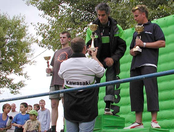 "Estem egy jó nagyot és elhajlott a sebességváltó kar. De olyannyira, hogy végén már csak sarokkal rugdosva tudtam sebességet váltani!" � adta meg harmadik helye magyarázatát Czuni László, aki így is nyert a negyedliteres géposztály összetettjében. A bajnokságot azonban továbbra is Grillmayer Gábor vezeti, akinek pesszimizmusa végül is alaptalan volt, hiszen nagy fölénnyel nyerte a Kawasaki superfinálét.