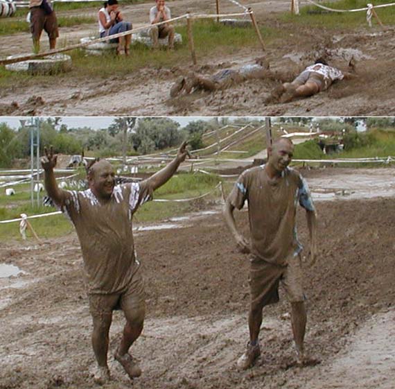 A második futamban a rettenetesen felázott pályán a hazai pálya előnyét élvező ifj. Borka János remekül jött el a rajtgéptől és a kenőszappan síkosságú pályán a táv felénél már 26 másodperces előnyre tett szert az ugyancsak remek napot kifogó és a második helyet abszolút biztosan megszerző Tóth Ádám előtt. A számára szokatlan pályán � ilyen síkosságú talaj párját ritkítja � Jurai Dózsa biztosan szerezte meg a dobogó harmadik fokát. Lécz Gergely a plusz kör betartása után ugyancsak komoly rohamot intézett ellene, ám a célegyenes óriási sártócsájában elakadt és hidegfürdőt vett. Ami a fürdőt és a dagonyázást illeti két �Borka-fun� az eredményhirdetéskor az addig amúgy makulátlan ruhájában szabályosan fejest ugrott a már említett tócsába.
