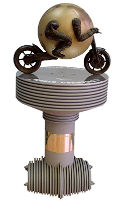 A 70 cm magas szobor, 30 kilógrammot nyom, a bronz véset a Gyorsasági Motoros Világbajnkoság egyedülállóságát, előkelőségét és az egész világra kiterjedő varázsát jelképezi.