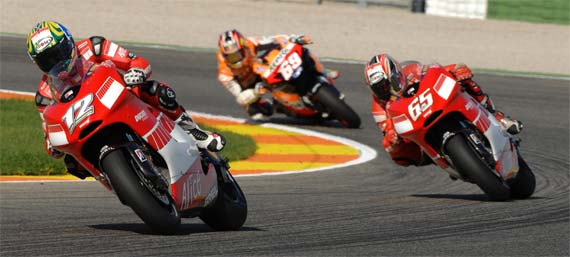 Valenciában álltak utoljára a rajtrácsra az ezres négyütemű lóerőgyárak. A búcsúszezon talán a legfordulatosabbnak bizonyult mind közül. Nem is emlékszem mikor maradt az utolsó fordulóra a bajnoki cím eldöntése a királykategóriában, de Valentino Rossi felbukkanása óta bizonyosan nem. A 2002-től kezdődő négyütemű időszakot akár Rossi-érának is lehetne hívni hiszen négy világbajnoki címet nyert az ezresekkel, kettőt a Hondának, kettőt a Yamahának. Az idei szezon azonban nem alakult olyan simán, a sorozatos technikai és egyéb problémák miatt már-már elúszni látszott Rossi nyolcadik VB címe. Valentino azonban az év második felében fantasztikus hajrával több, mint 50 pontot hozott az egész évben kiegyensúlyozottan dobogós Haydenen és hála az emlékezetes Pedrosa-manővernek nyolc pontnyi előnnyel várhatta a zárófordulót. Igaz, a Ricardo Tormo technikás aszfaltcsíkja sosem tartozott a kedvencei közé. A pénteki első szabadedzésen ettől függetlenül Rossi volt a leggyorsabb, noha Stoner és Hayden csak ezredekkel maradt le tőle. Délutánra azonban Capirossi és De Puniet vezetésével egy Bridgestone-fölény kezdett kialakulni. A Gibernaut helyettesítő Bayliss csak a tizedikként zárta az első napot de Capirex szerint az ausztrál versenytempója már ekkor is feltűnően jó volt. A szombati edzésen újra Rossi neve szerepelt az eredménylista tetején majd jött a kvalifikáció és egy hihetetlen 1'31.002-es körrekorddal a Doktor megnyerte a pole pozíciót. "Tudtuk, hogy a kvalifikációs gumikkal nagyon jók leszünk, mivel már délelőtt a szabadedzésen kipróbáltuk őket és délután is három nagyon gyors kört tettem meg velük, a körök egyre jobbak és jobbak lettek és az utolsó nagyon gyors volt. 1'31.002-t tényleg hihetetlen volt megcsinálni. Ez a pole pozíció döntő számomra mert a versenytaktikám fontos része az élről rajtolás. A kvalifikáció számomra nem is alakulhatott volna jobban, mivel köztem és Nicky között vannak még páran. Sajnos Colin nincs közöttük, noha a versenytempója jó és remélhetőleg tud majd segíteni ahogy Estorilban is."