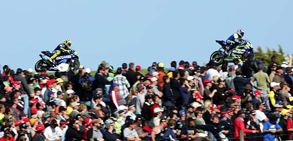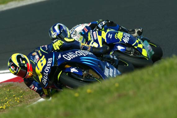 Ekkor úgy hihettük, hogy Vale megelégszik ezzel a pozícióval, és okosan, akárcsak a másik két kategória idei világbajnokai, biztosra megy. Persze Rossit nem abból a fából faragták, aki a dobogó második fokán állva szeretné ünnepelni világbajnoki címét, és támadni kezdte Gibernaut, akit sikerült is 9 körrel a vége előtt a célegyenesben megelőznie. Nem sokáig állt az élen hiszen Sete 4 körrel ezután, szintén a célegyenesben visszavette az elsőséget. A döntést az utolsó körre hagyták. Előbb Rossi előzte ismét meg riválisát, majd hibázott és Gibernau vágott vissza, de végül Vale manőverezett jól, és elsőként haladt át a célon. A harmadik helyért is nagy csata dúlt, hiszen Barros és Capirex mindenképp a dobogóra akartak állni. Mivel Capirex olvasta negatív kritikánkat a Ducati idei szerepléséről, összekapta magát és megkaparintotta a harmadik helyet. Gibernau nem tudta leplezni csalódottságát, és akárcsak a Holland TT-n, ismét szűkszavúan nyilatkozott: "Mindent megpróbáltam. Gratulálok Valentinonak és csapatának - ezúttal nyertek, de jövőre visszatérek."
