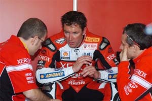 Ruben Xaus egy nem túl jól sikerült MotoGP-s kiruccanás után tért vissza a Superbike VB világába és már a harmadik versenyt a hetedik helyen fejezte be. Ennek ellenére kevesen hitték, hogy ilyen hamar visszatér a régi fergeteges formája. A Sterilgarda Berik pilótája, Lanzi, tavalyi gépével még a reggeli hűvösebb időszakban állította fel 1’34.659-es legjobbját ráadásul a spanyolt még mindig hátráltatja egy szezon előtt szerzett sérülése.