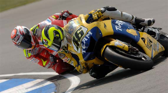 A vasárnapi rajt hibátlanra sikerült, főleg Melandrinak aki elsőként fordulhatott az egyenes végén hátában Pedrosával és Vermeulennel. Hiába a ragyogó kvalifikáció, az ausztrál Suzukis fokozatosan hátrébb szorult, majd a tizenhatodik körben egy bukás pecsételte meg sorsát. A helyét Hopkins vette át, aki Pedrosa egyik bakiját kihasználva kis időre a második helyen motorozott. Casey Stoner is begyorsult de pechjére Kenny Roberts még jobban elkapta a fonalat és visszaszorította az ausztrált az ötödik helyre. Közben beindult a Rossi-expressz is, ami a táv harmadánál már a hatodik helyről kezdte Stonert nézegetni. Hopper végül követte csapattársát a középmezőnybe, az élen pedig Pedrosa kezdett egész komoly előnyre szert tenni a többiekkel szemben. Így Melandriéknak a dobogós helyekért kellett játszani, amibe a huszonegyedik körben már Rossi is becsatlakozott. Marco mindent bevetett de a döntő kanyarban hibázott így a hétszeres világbajnok állhatott a dobogó második fokára. „Assen és a baleset után ez egy nehéz hétvége volt. Nagy erőfeszítésembe került, hogy jó formában lehessek jelen és a csuklóm sem fájt annyira a verseny alatt, Doctor Costa és a pszichoterapeutáim jó munkát végeztek. Nem voltam a maximumon de jól éreztem magam. A hétvégén szenvedtünk a motorral. Általában jók vagyunk itt, de ez alkalommal küzdenünk kellett vele. Reggelre egy új beállítással és új gumikkal készültünk, azonban az eső miatt a versenyre minden teljesen új volt számunkra, és beletelt pár körbe mire rátaláltam a ritmusomra. A végén nagyszerű küzdelem volt Marcoval.” – nyilatkozta Vale.