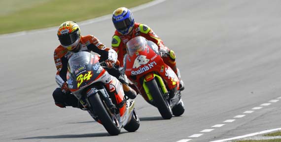 A rajtnál Dovi jött el a legjobban, Lorenzo és Hiroshi Aoyama követte, pár kör alatt azonban a vezető kettős alaposan elhúzott majd Lorenzo egy briliáns előzéssel meglepte az olaszt. A Humangest versenyzője nem adta fel és mindent mozgósított, hogy legnagyobb riválisával maradjon, ám a verseny felénél besokallt és kicsúszott. Szerencséjére vissza tudott jönni és végül a hatodik helyen végzett, míg Lorenzo immár senkitől sem zavartatva győzött. „Sajnos a féktávokon hoztam be az egyenesekben szerzett hátrányt és a hibalehetőség benne van, mikor ilyen keményen húzza az ember.” – nyilatkozta nem túl szomorúan Dovi. „A szezon kezdete óta ilyen körülmények között versenyzem, mindig a határon motorozom és az utolsó kanyarban túl keményen fékeztem ezért kicsúszott az eleje. Még mindig vezetem a bajnokságot, de ez nem ér túl sokat mivel az Apriliával szembeni hátrányunk túl nagy. Ma Lorenzo gyors volt és mindent megtettem, hogy közel tudjak kerülni hozzá ahogy az év kezdete óta mindig. Ha nem így tennék, nem vezetném a bajnokságot sem. Miután kicsúsztam pár körbe beletel mire újra megtaláltam a megfelelő tempót, mivel a lábtartó megsérült és a kormánycsutka sem volt már jó pozícióban.” – fűzte hozzá. A dobogós helyekért folytatott küzdelemben De Angelis végül megverte Aoyamát míg Loca a negyedik helyért járó pontokkal gazdagodott: „Elégedett vagyok nagyon ezzel a helyezéssel. Az Apriliám, ha nem is tökéletesen, de remekül ment. A verseny első felében voltak gondjaim. A teli tank miatt kicsit rakoncátlankodott a gépem és nehezebben tudtam kezelni a nagyobb súly miatt. A versenygumi választás nagyon jól sikerült. Aoyamát nem is láttam, hogy mikor esett el. Én már csak akkor vettem észre, amikor a csapatom kitáblázta, hogy nőtt az előnyöm a mögöttem lévőhöz képest. Akkor hátranéztem, és sehol nem láttam senkit. A csapatom remek munkát végzett ismét. Köszönöm nekik”