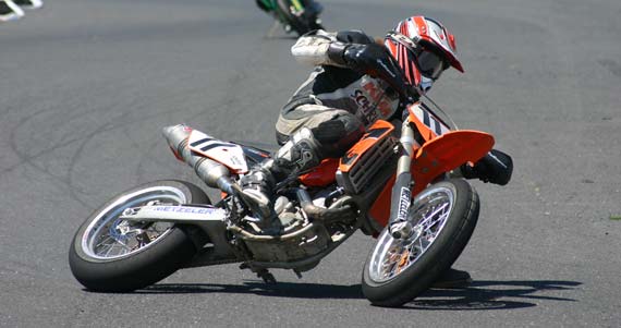 Ha bárki egy picit is unatkozott volna a 250-esek közben, azt bőven kárpótolta a SM450 osztály mutatványa. Noha a magyar bajnokságról megismert svájci élversenyzők nem indultak el ezen a fordulón, az őrjöngés nélkülük is a tetőfokára hágott a tököli aszfalton. Az első futamba bekavart két élversenyző Ales Hlad (SLO, KTM) és Heinz Hochreiter (A, KTM) korai rajtja, amit 5 mp-es Stop&Go-val büntettek, ezért Johann Schruf (A, Yamaha) nyugodtan elhúzott az élbolytól.