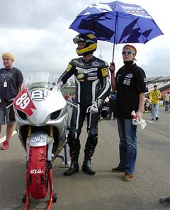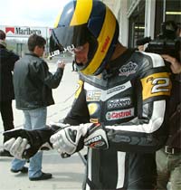 Amióta az életembe belépett a motorsport, soha nem láttam még ennyi versenyzőt egy helyen. Közel 300 megszállott mérte össze tudását a 25.-i versenyeken. Mint azt Ti is biztosan tudjátok egy �félkegyelmű� szombaton, szinte az egész pályát sikeresen összeolajozta, így gyakorlatilag kicsivel dél után megállt az élet az aszfalton. Eddig az időpontig Sanyi az első időmérő edzéseken volt túl. Igen, többes számban írok, mivel Superbike és Superstock kategóriában is rajthoz állt, amit az idén a Teensdorfban elfogadott új szabály tett lehetővé, miszerint egy motorral két kategóriában is el lehet indulni. Ez kifejezetten csak a SBK ill. a STK kategóriákra érvényes és az is csak úgy, hogy a Stockos motorral lehet Bike-ban indulni, fordítva nem. Ez azért is lehetséges, mivel a hengerűrtartalom idéntől megegyezik mindkét kategóriában és alapvetően egy Stockos motor egy tuningolt Bike motornak felel meg.