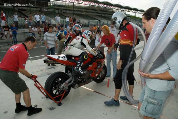 Székely nagy tervekkel érkezett a Hungaroringre. Az Alpok-Adria bajnoki tabellán a második helyen tanyázó Székelynek húznia kellett a gázt, ha közelíteni akart az élen álló osztrák Wolfgang Kerbl-höz. Arról nem is beszélve, hogy Lukaseder és Pintar is támadták hátulról. A hétvégét boxépítéssel kezdte, hogy a kilátogató barátok és a sajtó képviselői ne egy olajos szerszámokkal teli, rendezetlen boxba érkezzenek. Csütörtökön a szabadedzésekkel kezdődött a hétvége. Mint tudjátok, ilyenkor még nem kategóriák szerint edzenek a versenyzők, hanem két csoportban lehet a pályára gurulni. Székely utolsó tréningjén a cél előtti utolsó balosban nagy tempókülönbséggel ért utol néhány lassabb versenyzőt. Hogy elkerülje az ütközést, nagyot kellett fékeznie, a motor irányíthatatlanná vált és elesett. A Hondán, a lábtartón és az idomzaton kívül komolyabban semmi sem sérült, de Zsolt beütötte a vállát. Próbáltunk jeget szerezni a sérült „alkatrészre”, de sehol nem jutottunk hozzá, így kénytelenek voltunk beérni, egy hűtött üveges Colával. Másnapra a fájdalom enyhült és lehetett a kvalifikációs edzésekre koncentrálni. Az első hivatalos időmérőn mindössze 0,124 ezreddel maradt el Székely ideje Kerbl legjobbjától. A szombati időmérőre még komolyabban készült a csapat és a siker nem maradt el. Majd egy másodperccel jobb időt futott az osztráknál, aki ráadásul az edzés vége felé bukott.