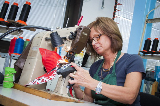 A szabásminta alapján kivágott idomokat és a Novation Group egyéb, a TCX-től legfeljebb tíz kilométeres távolságban lévő kompozitgyártó üzemeiből származó poliuretán alkatrészeket (mint pl. sípcsontvédő, boka és sarokrész, vagy maga a T.C.S. rendszer) ezután megkapják a varrónők, és megkezdődhet az érdemi gyártás. Az egytűs, speciálisan lábbeli gyártásra tervezett, német Pfaff varrógépeket magasan szakképzett helyi varrónők működtetik, akik a tervezési és gyártási részlegnél fontos beosztásban lévő szakemberekhez hasonlóan szintén a régióban található, cipészmesterséget tanító Centro Veneto Calzaturierón végeztek Stra-Venicében. Legtöbbjük már több mint tíz éve a cégnél van, és valószínűleg marad is, amíg munkaképes - professzionális szaktudás nélkül ebben az iparban nem terem babér, ezért a varrónőket roppant nagy becsben tartják cégen belül.