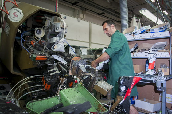 Az egyetlen, nem is olyan apró szépséghiba mindebben azonban az, hogy az általunk Montebellunában meglátogatott TCX gyártósor az ürességtől kongott. Alig egy maroknyi ember jött-ment az üres polcok és pihenő gépek között, érzésre ők is leginkább a mi gyárlátogatásunknak asszisztáltak, mint tényleges gyártást végeztek. Az oka ennek egyáltalán nem egyedi: 2012-től a teljes TCX gyártás átkerült a cég romániai és kínai partnereihez, Olaszországban már csak az egyedi megrendelésű termékeket készítik, mint például a szponzorált versenyzők csizmáit. Ugyanakkor a minőségellenőrzés, az alapanyagok egy része, illetve a komplett gyártósor is mind olasz, tehát a munkásbéreken való spórolás elvileg nem mehet a minőség rovására.
