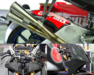 Ami talán a legbrutálisabbra sikeredett az a motoron levő trombitának is nevezhető kipufogó, amit a Honda, Ducati és Yamaha gépeken is megfigyelhetünk, de valahogy az Apriliások a designra is hangsúlyt fektettek.