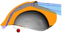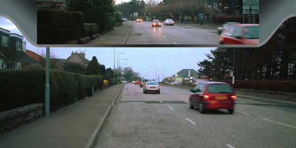 A tükör a bukósisak 'kémlelőnyílásának' :) felső részén helyezkedik el, így fejforgatás nélkül láthatjuk a mögöttes forgalmat is.