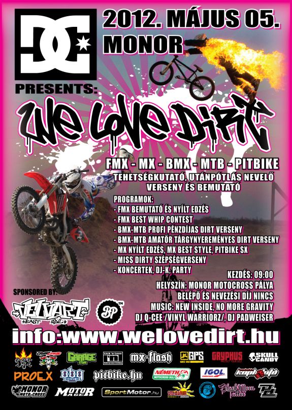 A rendezvény célja, hogy összefogja a „dirt-sportok” rajongóit és helyszínt biztosítson a fiatal tehetségek fejlesztésére. A WE LOVE DIRT szervezőcsapata egy olyan családias programot hozott létre, ahol egy helyen találkoznak a profi versenyzők, a tanulni vágyó fiatalok, és a laikus nézőnek is betekintést enged arra, hogyan kell legyőzni egy kétkerekűvel a fizika törvényeit.